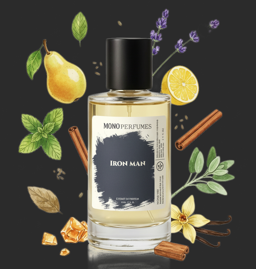Unleash unstoppable confidence with Iron Man, a powerful masculine fragrance inspired by the iconic Ultra Male. This scent opens with bold notes of pear, mint, and lemon, delivering a fresh yet seductive punch. The heart reveals warm cinnamon and clary sage, creating an addictive depth, while the base settles into vanilla, amber, and black lavender for a long-lasting, magnetic trail.